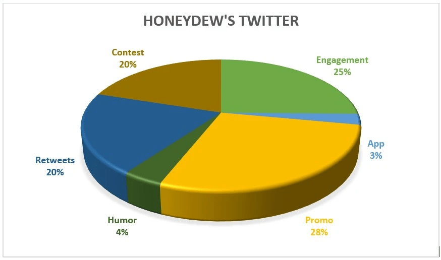 Of the two brands, Dunkin’s comes across as the more assured and professional; Honeydew’s Twitter account has some basic errors (such as not linking “foodie.on.a.roll” or other accounts properly) which leads to a conclusion that they are either inexperienced or oddly careless. These accounts, while ostensibly advertising much the same products, end up projecting very different SM strategies and personas.